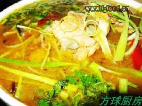 3.炒锅加猪油烧热,下葱、姜爆锅,下料酒、八角、味精、精盐、酸菜煸炒,再加鲜汤,下鲶鱼炖20分钟,淋香油,加胡椒粉即可。