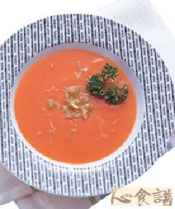 红萝卜200公克,马铃薯60公克,洋葱40公克,西芹20公克,奶油50公克,鸡汤600㏄,蕃茄酱2茶匙,盐1/2茶匙