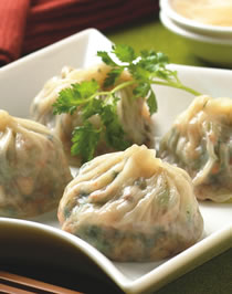 4.每片面皮,包入作法3均约20公克,包成小笼包状后,放入蒸笼。