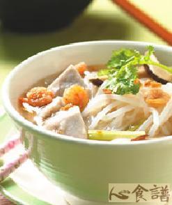 埔里米粉300公克,芋头200公克,香菇3朵,红葱头5颗,瘦肉100公克,高汤1500㏄,芹菜末10公克,油葱酥少许,香菜少许,盐1/2大匙,胡椒粉1小匙