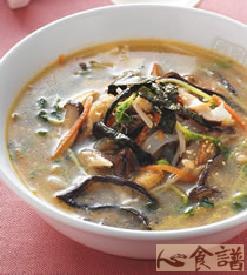 主料:鲷骨(赤宗鱼骨)300公克,辅料:红,白萝卜丝各1/2杯,调料:味噌80公克,豆腐,海带芽,糖,味精各1/8小匙,葱花2大匙
