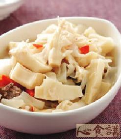 2、海参、春笋切成条。