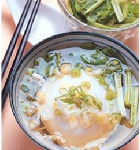 蛋1个,高汤1杯,青菜少许,葱花1大匙,香油少许