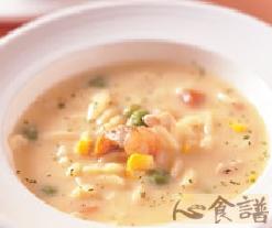 第一种:汤类菜谱虾仁通心面浓汤做法