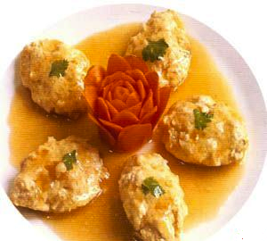 主料:豆腐二块,剁碎猪肉三两,蛋白二只,清鸡汤约1又1/2杯。火腿茸少许,碎肉调味:生抽1茶匙,盐1/4茶匙,胡椒粉,生粉各少许。
