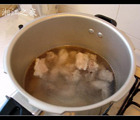 3、加水(与煮饭加水方式相似,即手压在排骨上,水漫过手背)