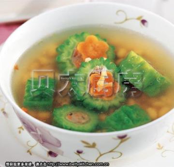 这道汤中加入了黄豆是美味的关键,黄豆与苦瓜在煮汤时味道的搭配非常和谐。