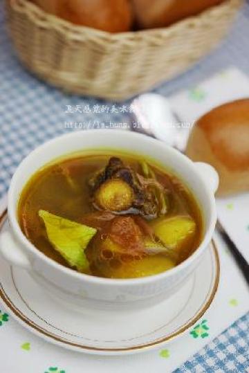 牛尾,一只,洋葱,一个,土豆,一个,番茄,一个,卷心菜,两片叶子,咖哩,姜,调味料:盐,料酒