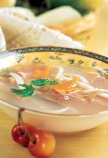 鲜咸适口,香味诱人。炖此汤时可加少许白酒和生姜,能有效去除腥味。