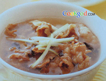 (2)、将羊肉、药包放入沙锅中,加适量清水,用旺火煮沸,撇去浮沫,改用文火烧至肉烂熟,去药包,加入植物油、味精、胡椒粉、精盐调味即可。