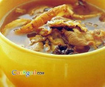 a:猪脊骨250克,b:党参4根,红枣3颗,桂圆肉8颗,枸杞子20颗,芡实40颗,调味料:盐1/4小匙