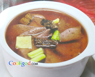 4.把全部用料一齐放入瓦锅内,加清水适量,武火煮沸后,文火煮一小时,调味即可。
