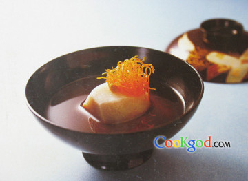 (3)里芋置于碗中,轻轻注入赤味噌汁。