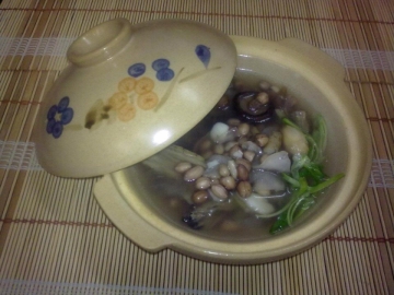 接着倒入热汤锅里,再把一旁久等的淮山/百合/香菇参入一起煲~~