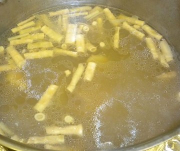 第二步:将直通骨劈断,劈开两片,放入锅中,加入葱、姜,然后放入冷水,冷水最好一次性加足;
