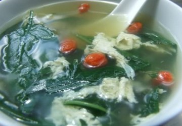 3、然后加入鸡蛋成蛋花汤,熄火加入枸杞,滴入几滴香油,就好了。