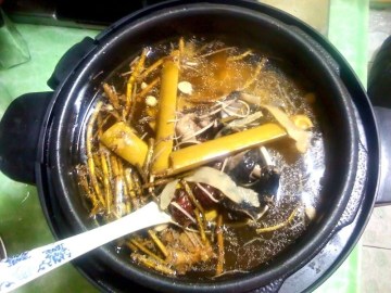 6.煲好后,分食。吃的时候撒盐,如果吃不完放入冰箱,不要加入盐,否则隔夜会亚硝酸盐过多
