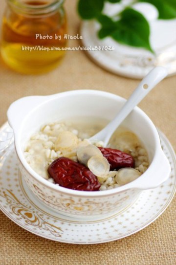 **这款汤中的薏米,一定要放,除了有针对皮肤美白的功效之外,还可以是汤变得粘稠,喝起来口感特别好。