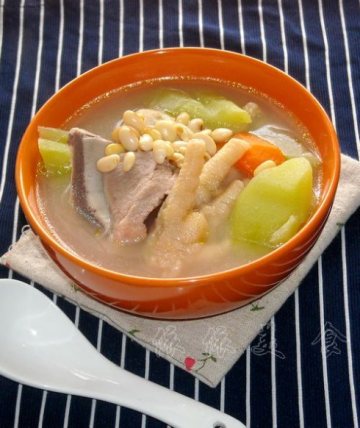 相关菜谱名称推荐:佛手瓜黄豆鸡脚汤,佛手瓜黄豆鸡脚汤,黄豆鸡脚汤,扁豆眉豆鸡脚汤