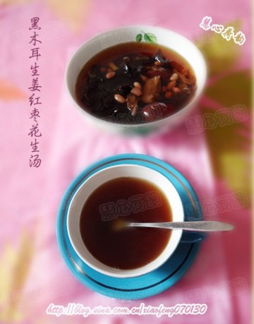 第一种:汤类菜谱黑木耳生姜红枣花生汤做法