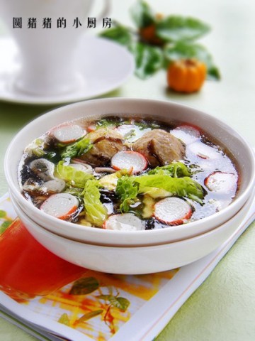 第一种:汤类菜谱贡丸虾皮紫菜汤做法