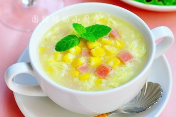 玉米粒罐头225克(半瓶),火腿80克,黄油15克,面粉15克,鸡蛋1颗,清水400克,盐1/4小匙,糖1/2小匙如果罐头够甜可免