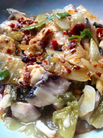 主料:草鱼片、酸菜、大葱、