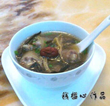 猪心用鳝鱼替换,称茶树菇鳝片汤。