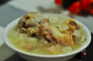 3、通草洗净后放入,小火继续炖40分钟左右,调入少许盐即可。