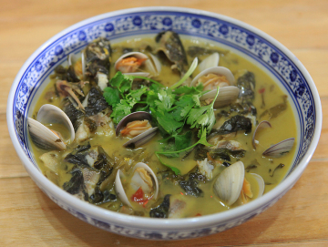 第二种:汤类菜谱酸菜汪刺鱼蛤蜊汤做法