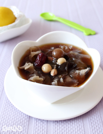 第二种:汤类菜谱润肺护发双耳桂枣花莲汤做法