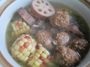 第二种:汤类菜谱玉米肉丸藕汤做法