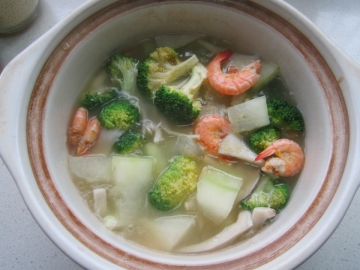第二种:汤类菜谱冬瓜西兰花平菇虾汤做法