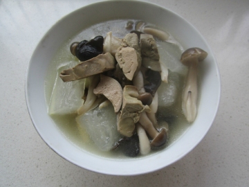 第一种:汤类菜谱冬瓜蟹味菇鸭肝汤做法