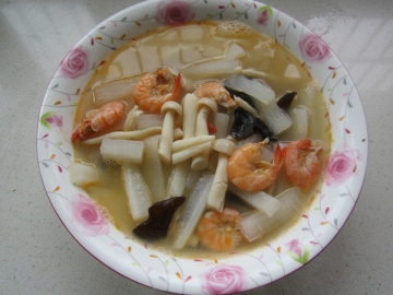 第一种:汤类菜谱海鲜菇萝卜丝虾汤做法