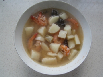 第二种:汤类菜谱山药木耳虾汤做法