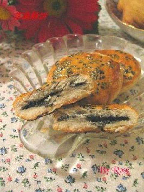 7.准备好炒过的芝麻和砂糖;象包包子一样,但不留口;放一碗炒好了的芝麻,将包好了的东西用手两面压成饼状,同时又粘上芝麻,包口朝下;压好形状后放在烤盘,刷上蛋黄液,烤二十分钟左右