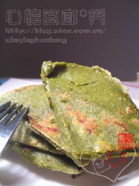 青蒿搅碎之前我拿盐水泡过了,可以把淡淡的苦味漂出来~