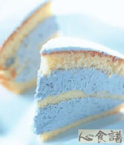 4.将完全冷却的蛋糕脱模,用刀子横切两刀(底部须稍微厚一些),将作法3涂抹在底部蛋糕及中层蛋糕上,将三层蛋糕组合起来。