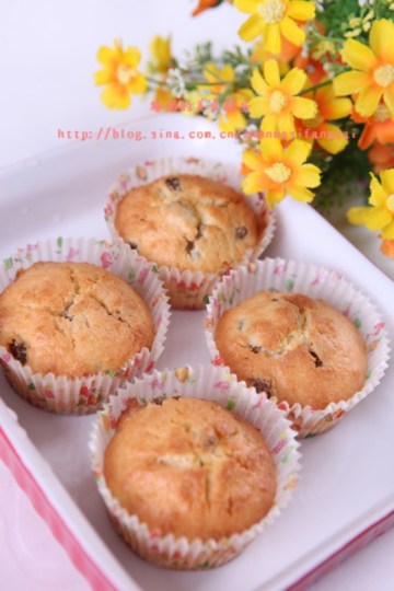 3.最后加入葡萄干一起拌匀,用勺子盛入烤模或小纸杯中,160度,30分钟左右即可(依据各家烤箱功率而定,至表面有金黄色,且轻微开裂即可)