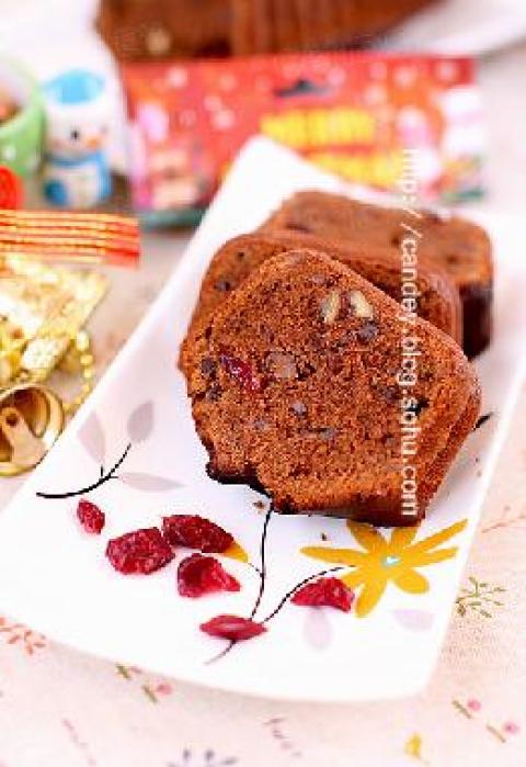 低粉85克,可可粉15克,泡打粉1克,黄油100克,糖粉100克,鸡蛋两个,牛奶30克,香草精少许,辅料:蔓越莓15克,蜜枣15克,碧根果仁(熟)30克,核桃仁(熟)30克,模具:三能罗兰模(不粘)