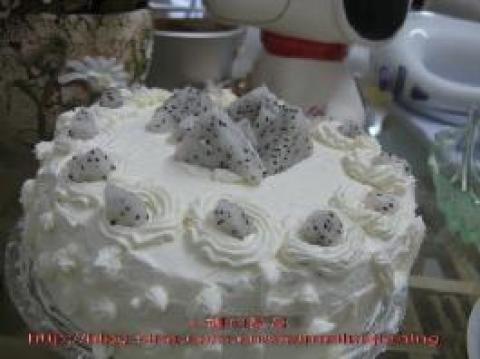 八寸戚风蛋糕一个,淡奶油300克,糖60克,白兰地少许,冰,火龙果