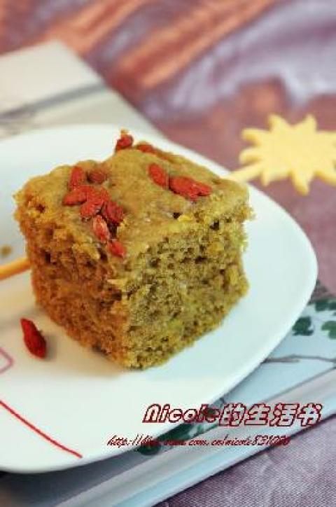 面粉100g,奶茶粉1袋,香蕉1根,鸡蛋1个,红糖50g,色拉油50g,泡打粉2g,枸杞适量