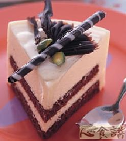 动物性鲜奶油168公克,奶油乳酪336公克,蛋黄67公克,细砂糖84公克,沸水67公克,吉利丁13公克,巧克力蛋糕4片,酒糖液适量