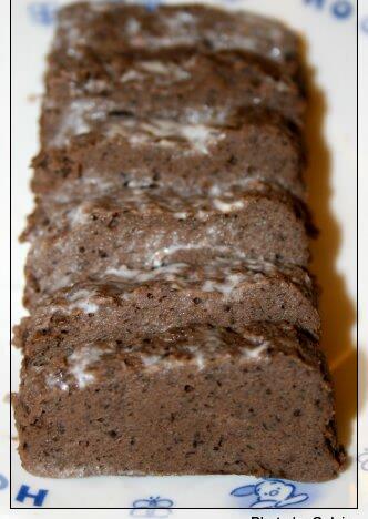 2,打发的蛋黄+打发蛋白+豆渣+可可粉切拌均匀,入模(我用的是巴黎春天下10元均一买的黑色长方形小模)