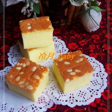 8。入模,洒上红瓜子仁,震泡后入箱浴烤60分钟,180度上色后转150度烤。