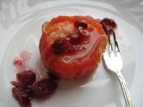 3.直到苹果熟透变软,降温后用小勺将糖果汁淋在果肉上,放冰箱冷藏,1小时--3小时后可取出食用。
