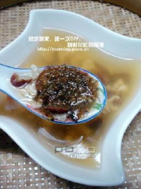 3.最后,把糖桂花拌在一起。有这个糖桂花就不用放糖,喝的时候飘了桂花和红枣的清香。正