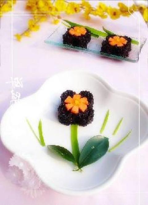 第一种:甜点菜谱黑米可可花花糕做法