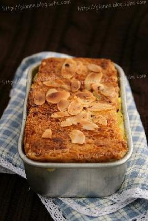 5.最后在布丁上层再撒上适量肉桂粉、杏仁片,放入已经预热到220度的烤箱中,用200火力烘烤15-20分钟,直到布丁表面变得焦黄酥脆即可。